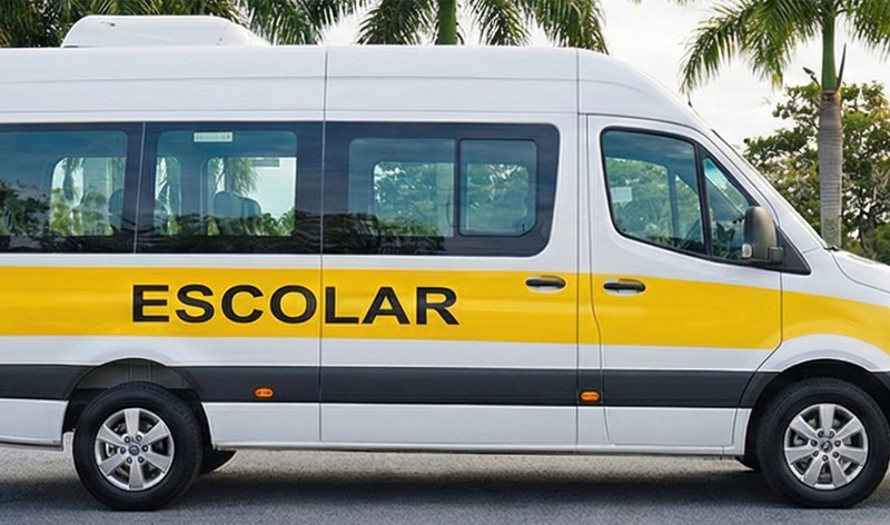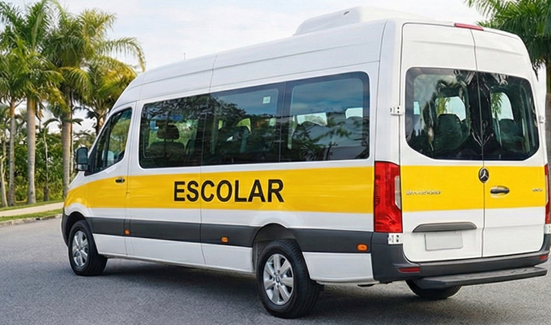 A van escolar sai do bairro Bela Vista e atende os melhores colégios da região.