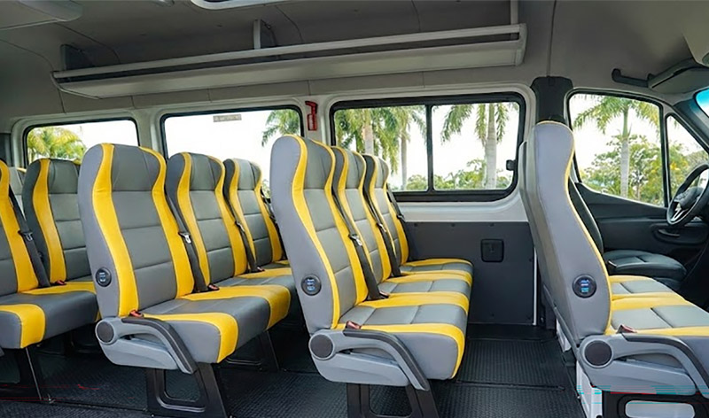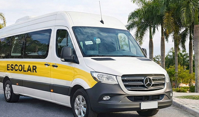 A van escolar sai do bairro Bela Vista e atende os melhores colégios da região.